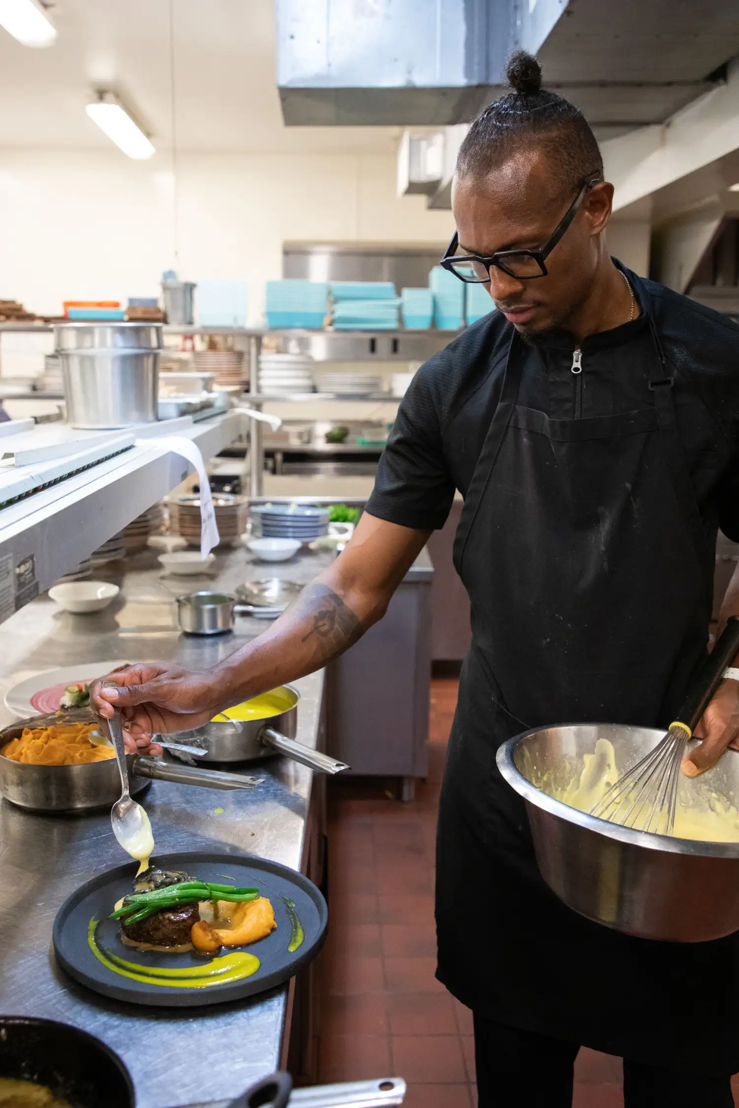 An award-winning executive chef who has etched his name among Jamaica's finest culinarians. Distinguished by his trademark black rimmed glasses, Chef Lumley's culinary prowess goes far beyond appearances, with a rich reserve of dedication and creativity fuelling his success. Renowned for his humility, warmth, and impeccable work ethic both inside and outside the kitchen, he stands out as a respected figure in the culinary industry.